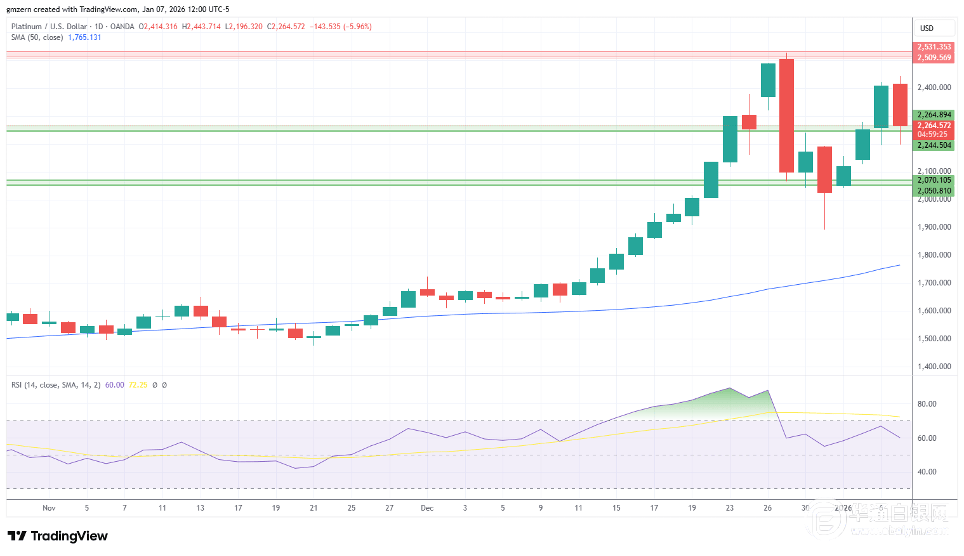 如果这一尝试成功,铂金将向下一个支撑位2050-2070美元区间前进。