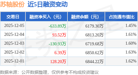 证券之星消息,12月5日,苏轴股份(920418)融资买入320.37万元,融资偿还954.26万元,融资净卖出633.89万元,融资余额6179.3万元。