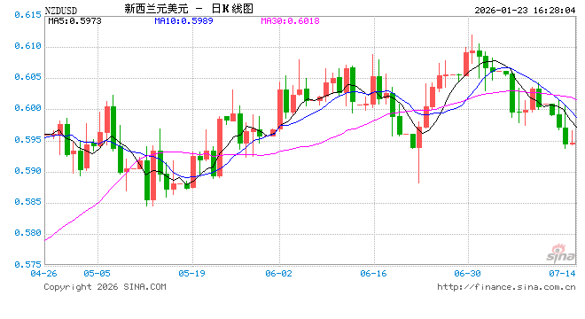 新浪外汇消息2026年01月23日,截至16时27分,外汇市场上新西兰元兑美元汇率跌破1新西兰元兑换0.5896美元。跌幅为-0.5230%
