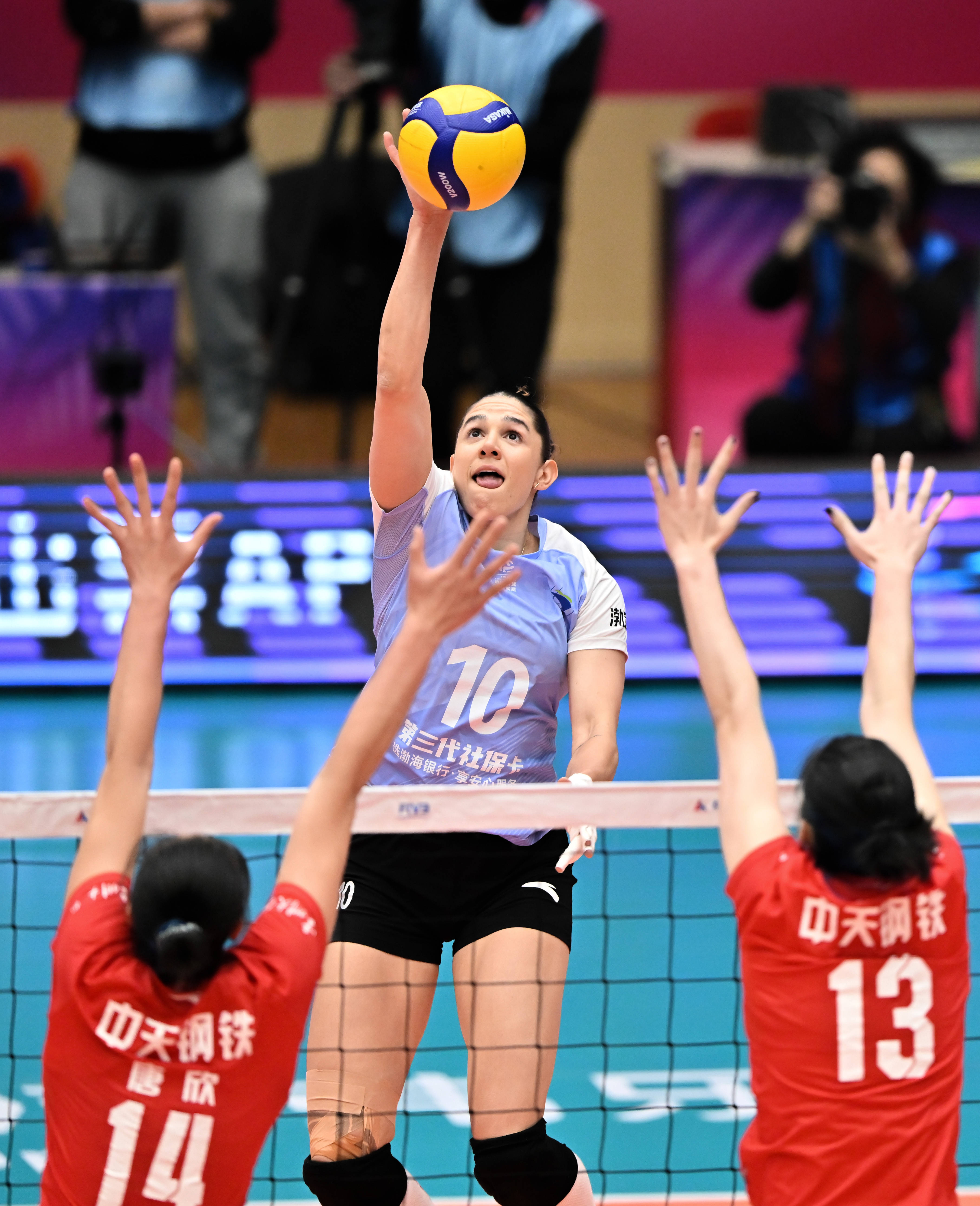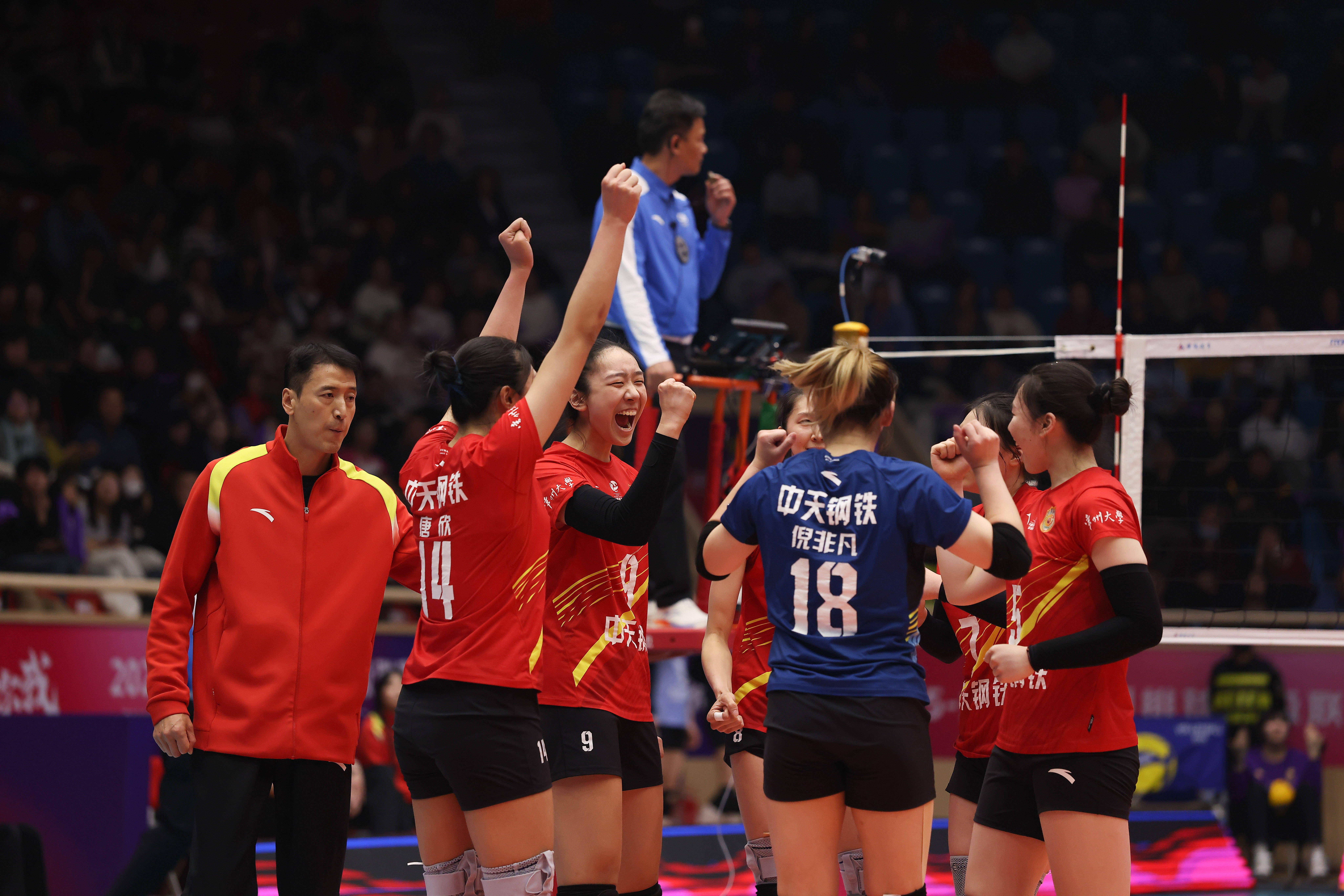 1月24日,在2025-2026赛季中国女子排球超级联赛常规赛A级第11轮比赛中,江苏中天钢铁队客场3比2战胜天津渤海银行队。