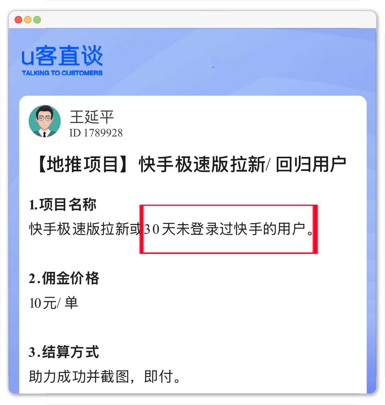 怎么判断呢?一般可在U客直谈这类推广任务平台查看项目详情,如果标明“老用户拉新佣金”,那就是可用的码。