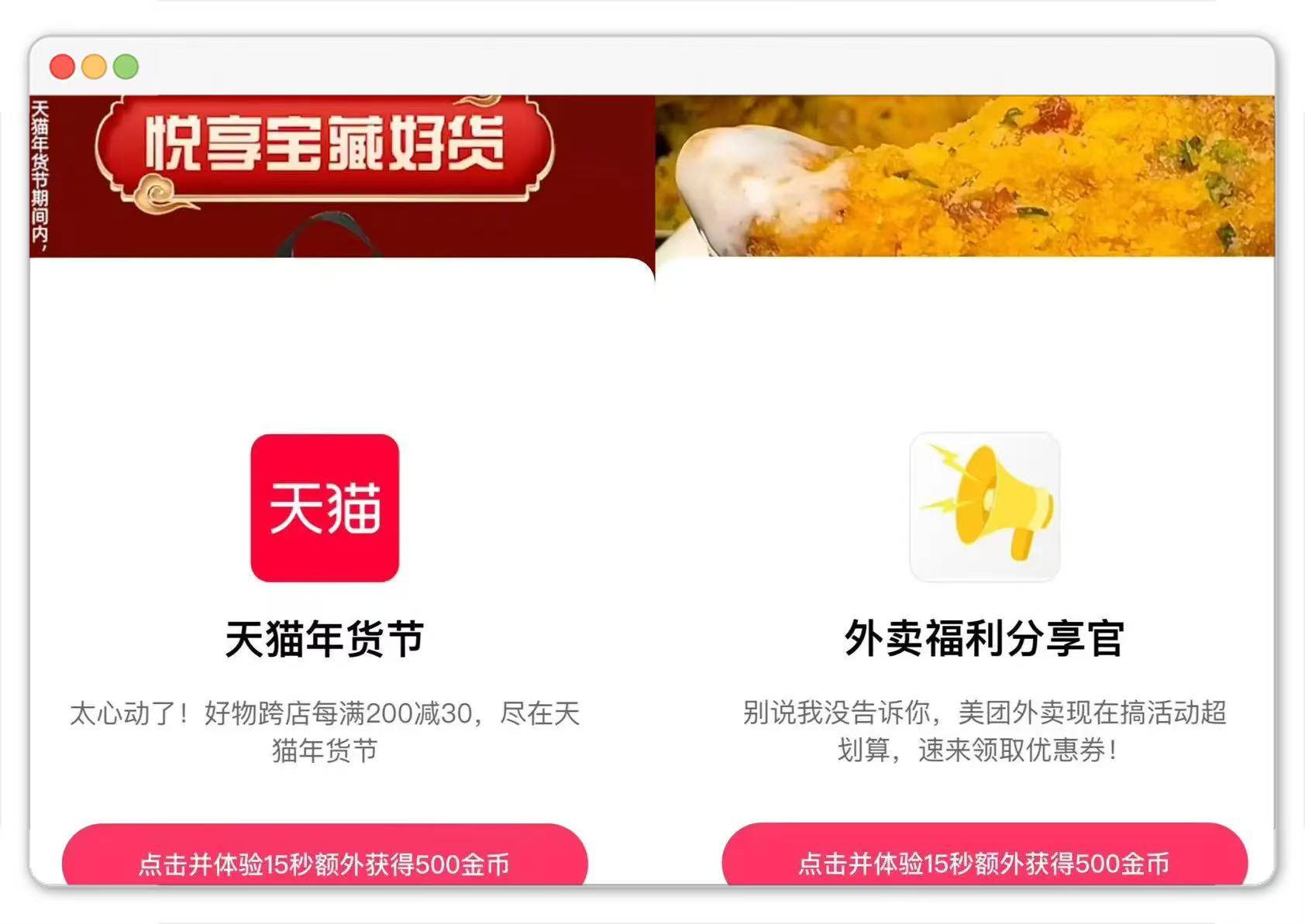 安装转化:比如看到游戏广告,就去安装一下,并试玩一段时间。