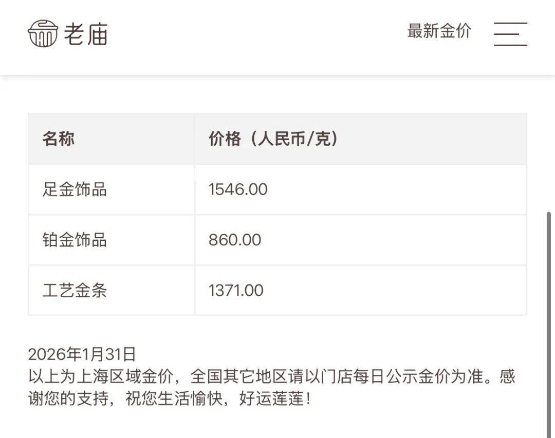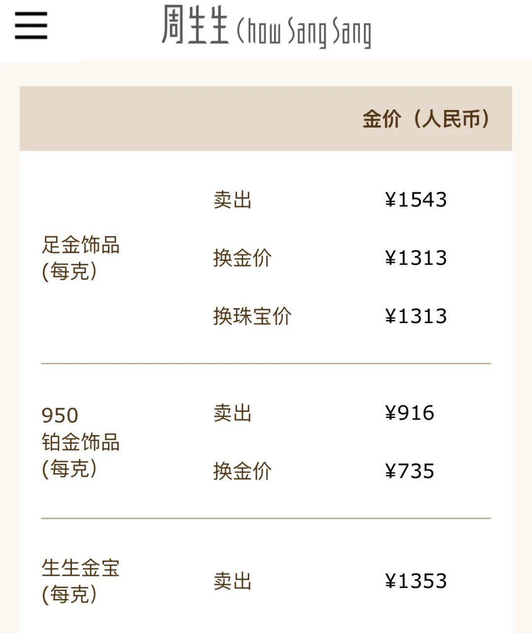 受此影响,部分国内品牌金饰价格也大幅下跌,克价单日跌超百元。中新经纬31日查询发现,周生生足金饰品报1543元/克,较前一日此时跌119元;老凤祥足金饰品报1498元/克,单日跌170元;老庙黄金足金饰品报1546元/克,较前一日此时跌144元。