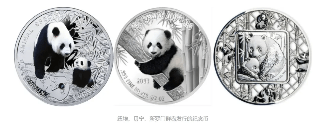 纽埃、贝宁、所罗门群岛、图瓦卢、中非、托克劳都曾发行过熊猫题材纪念币。