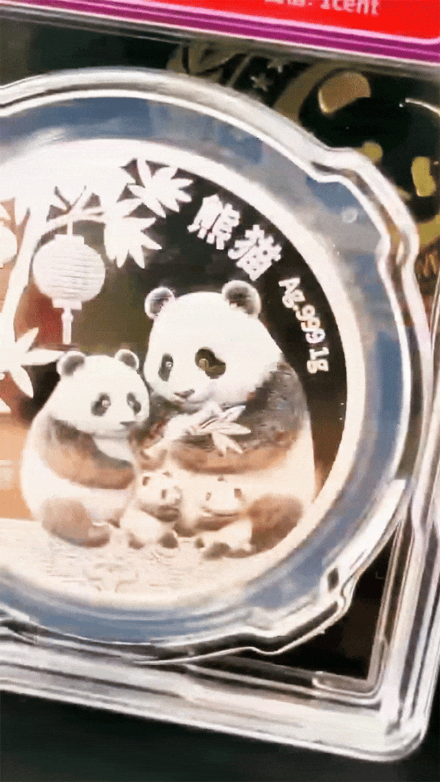 含Ag999足银1克,打造集“国宝名片、法定货币、贵金属材质”于一体的国际版熊猫纪念币。