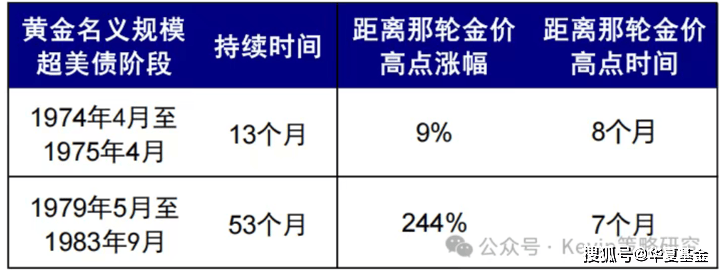 70-80年代出现两段较长时间黄金规模超过美债阶段