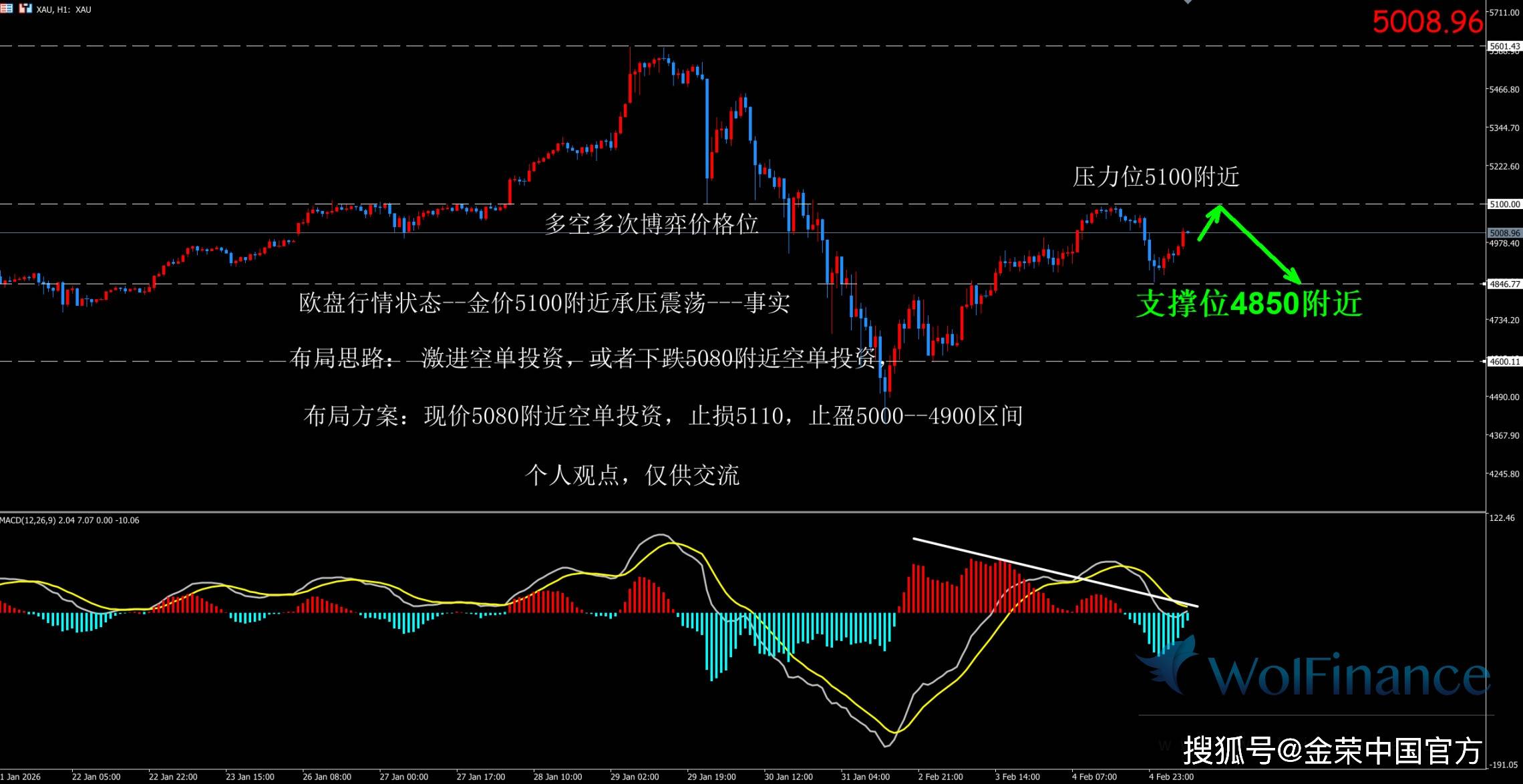 1.布局方案1:5090附近空单布局,止损5105, 止盈4950-----4900区间,
