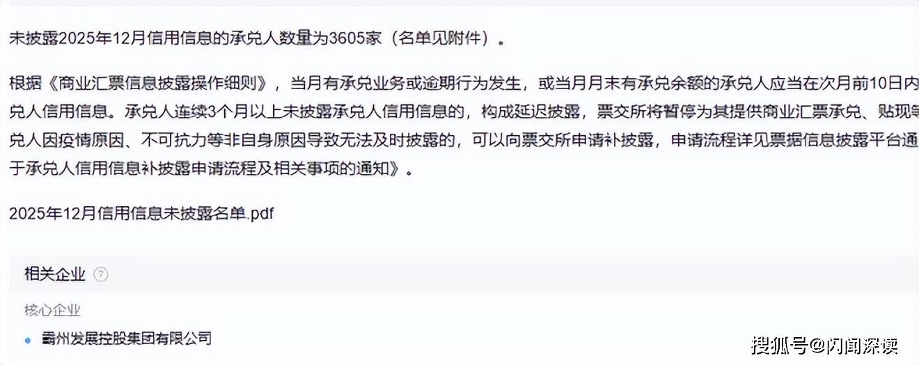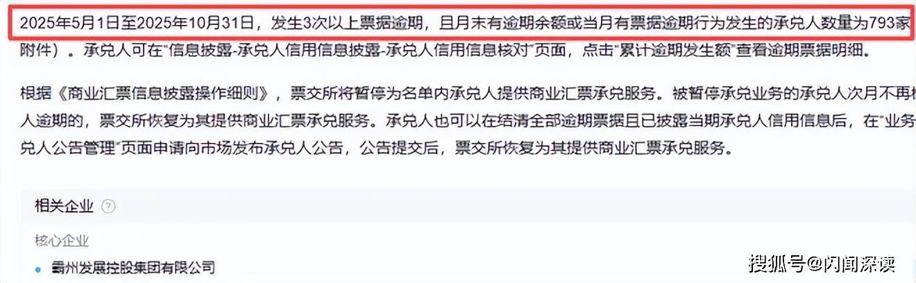 担保方霸州发展自身信用状况堪忧。上海票据交易所2025年11月7日公告显示,在2025年5月1日至10月31日期间,霸州发展发生3次以上票据逾期,且存在月末逾期余额或当月新增逾期行为,已被暂停商业汇票承兑服务。此外,2026年1月14日,票交所再次披露,霸州发展未按期披露2025年12月信用信息,进一步加剧市场对其履约能力的质疑。