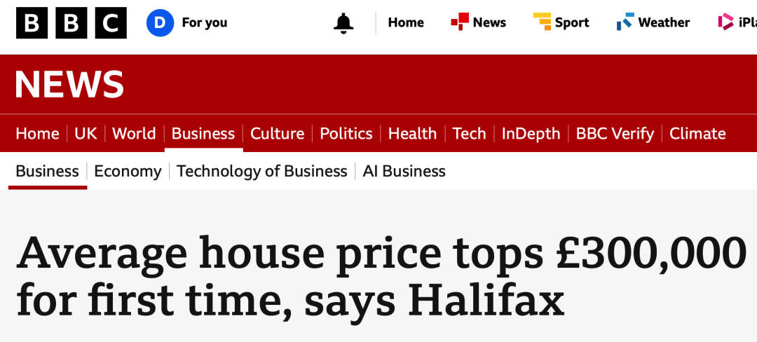 Halifax统计数据:英国平均总房价首次突破30万英镑,今年房价将涨1-3%