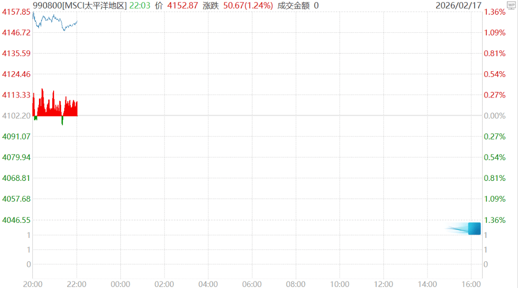 日股上涨带动亚太指数。MSCI太平洋指数上涨超1%。交易量因多个地区市场休市而明显偏低。韩国股市也因春节假期休市。