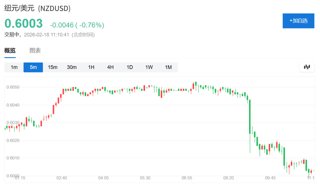 纽元兑美元下跌超0.7%、逼近0.600关键关口,政策敏感的2年期新西兰国债收益率扩大跌幅,交易员下调了对新西兰央行加息的预期。市场对10月前加息的定价从此前的90%降至约75%。