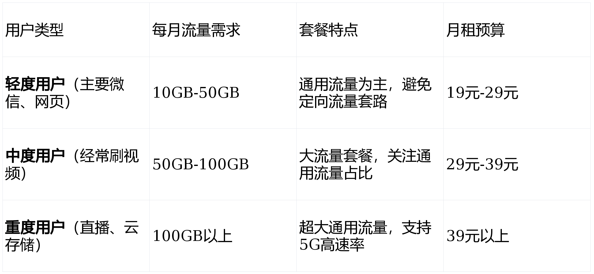 选卡不能光看价格,更要看合不合适。就像买鞋子,合脚最重要。下面这个表格帮你快速了解不同需求该关注什么: