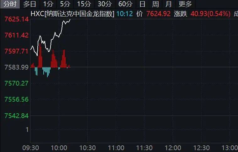 热门中概股上涨居多,纳斯达克中国金龙指数小幅上涨。霸王茶姬涨超3%,百度集团、阿里巴巴、蔚来涨超1%;金山云跌超1%。