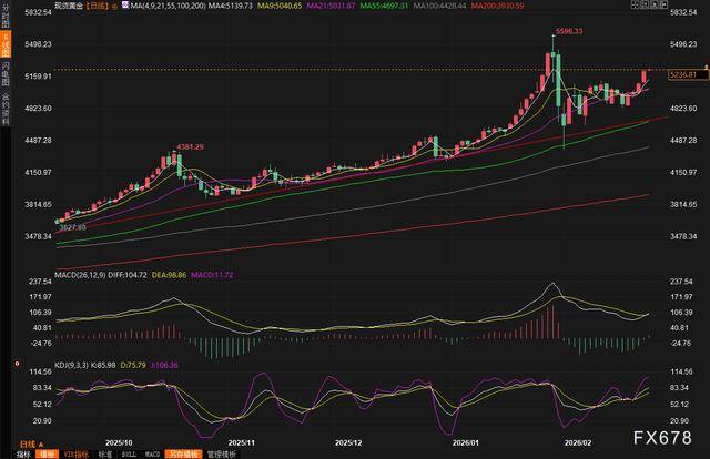 而与股市的惨淡形成鲜明对比的,是黄金市场的璀璨光芒。现货黄金周一上涨超过2%,稳稳站上5200美元上方,周二亚洲早盘更是直接冲上5250美元的关口。连续四个交易日的上涨,勾勒出一条陡峭而有力的上升曲线。资金如同潮水般从风险资产中涌出,涌入黄金这个在风暴中始终屹立不倒的避风港。