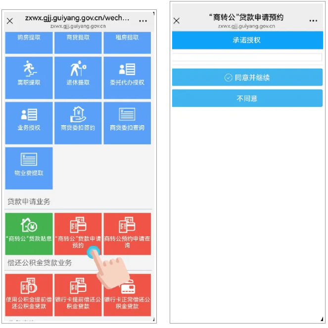 (一)线上预约排队。申请人登录“贵阳公积金”微信公众号,点击进入“‘商转公’贷款预约”模块,按照系统提示逐项登记相关信息。经系统判断,满足预约条件的,由系统自动匹配预约排队序号。