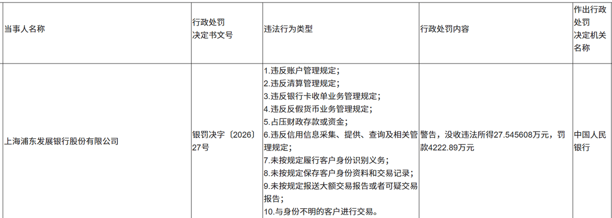 另外杠杆游戏注意到,2026年开年的这张千万级罚单,并非浦发银行近年里的独一份。