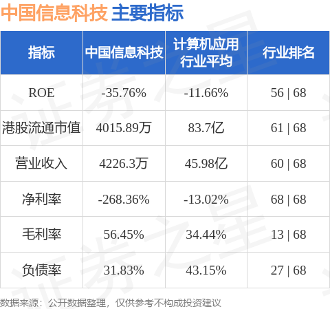 中国信息科技港股市值4015.89万港元,在计算机应用行业中排名第61。主要指标见下表: