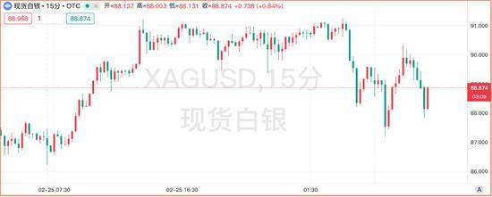 周四截至发稿,现货白银在88.90美元/盎司附近徘徊。本月至今累计上涨约4.3%。