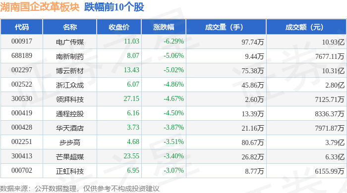 从资金流向上来看,当日湖南国企改革板块主力资金净流出20.78亿元,游资资金净流入10.07亿元,散户资金净流入10.71亿元。湖南国企改革板块个股资金流向见下表: