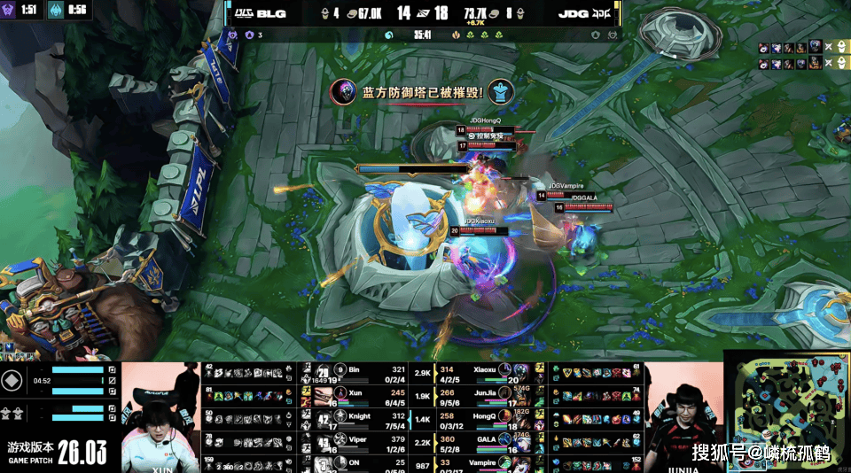 就比如决胜局,BLG在摇摆了许久后将冰鸟交给了ON,ON也是在下路打出了前期优势,再次陷入劣势的JDG靠着前期的小龙节奏的确拖住了发育节奏,一直在试图等到自己的双C装备成型,只可惜还是没能耐得住,最终在争夺小龙的团战中失利,惨遭BLG打出0换5,BLG则是借助BIN掘墓极强的拆塔能力,直接强行一波结束了比赛。