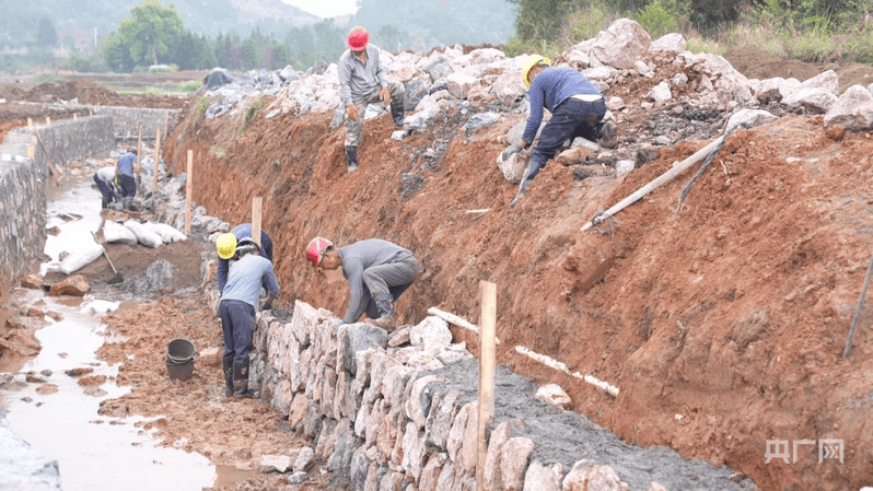 工人们趁着晴好天气,正加紧建设灌溉渠(央广网发 戴梦瑶 摄)