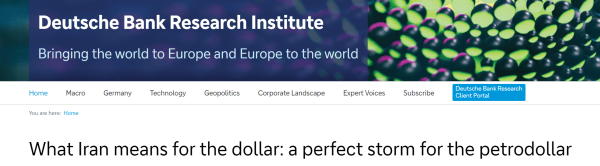 当地时间3月24日,德意志银行在一份题为《伊朗对美元意味着什么:“石油美元”遭遇完美风暴》的报告中如此写道。