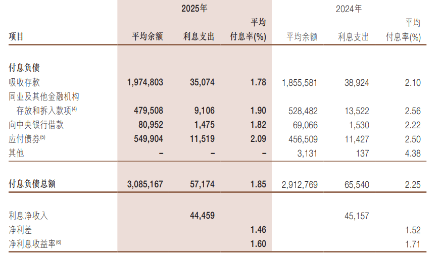 “价”的下降幅度远大于“量”的增长幅度,导致浙商银行2025年利息收入总额下降。基于此,浙商银行的净息差从2024年的1.71%进一步收窄至1.60%。