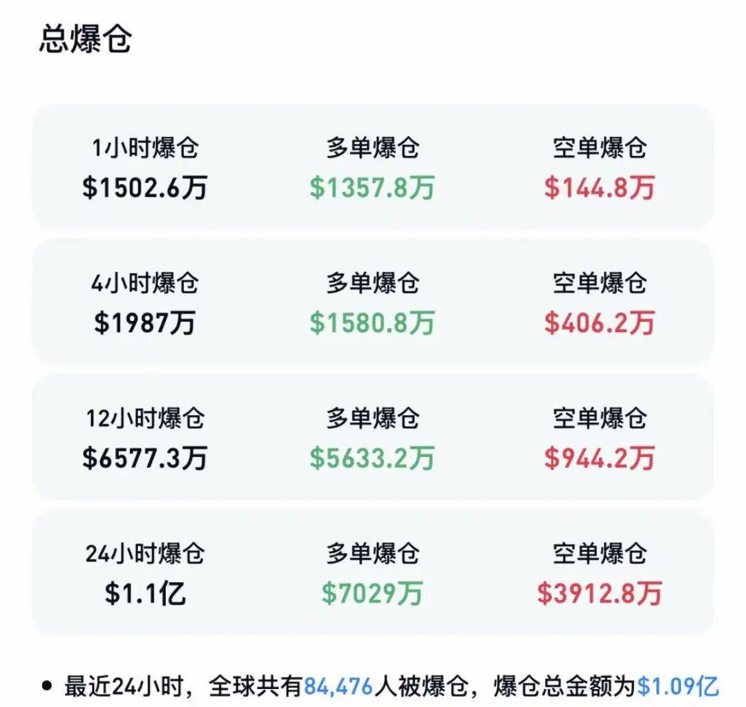 截至发稿,比特币跌超0.8%,以太坊则跌逾1%。数据显示,24小时内,加密货币全球共有超8万人爆仓。
