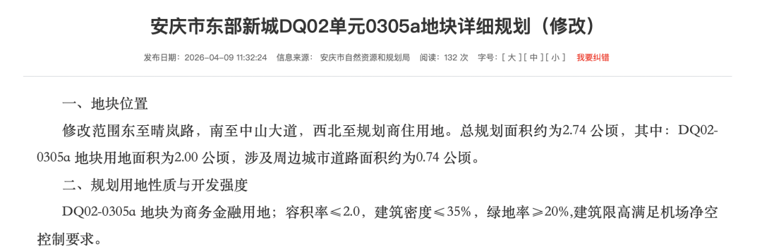 容积率2.0!安庆东部新城这块黄金宝地公示,未来将建什么?