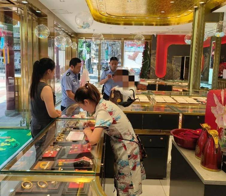 ▲警方在金店内找到准备购买黄金的女子王某(右一)