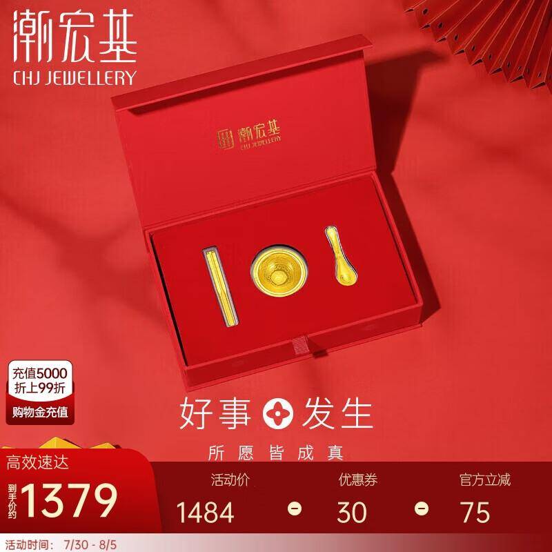 当新生儿的第一声啼哭划破产房的宁静,中国人习惯用黄金为这个新生命刻下第一道祝福。潮宏基这套足金碗筷勺三件套,采用传统錾刻工艺打造,碗身雕刻着"一生富贵"的篆体字样,筷子顶端饰以祥云纹,勺柄则做成如意造型。不同于普通金饰的轻飘感,这套餐具特意加重了底部重量,让宝宝抓握时能感受到沉稳的质感。特别设计的食品级硅胶保护套,既防止幼童啃咬损伤金器,又能让餐具真正用于日常喂养——黄金不该是锁在保险箱的藏品,而应是陪伴成长的温暖见证。