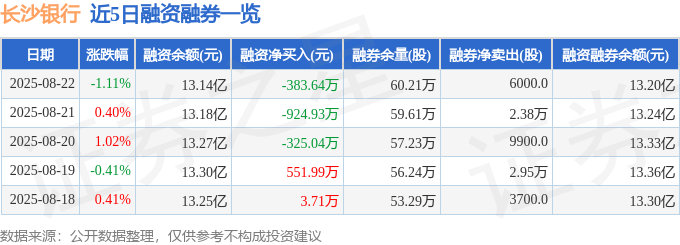长沙银行融资融券信息显示,融资方面,当日融资买入3612.53万元,融资偿还3996.17万元,融资净偿还383.64万元。融券方面,融券卖出4.0万股,融券偿还3.4万股,融券余量60.21万股,融券余额592.47万元。融资融券余额13.2亿元。