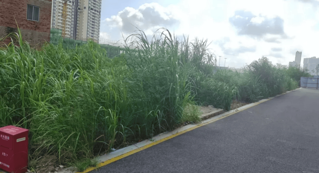 南宁玖悦府小区内部道路旁杂草丛生 受访者供图
