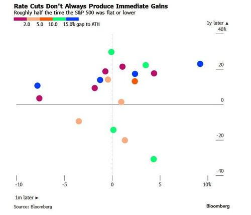 首先,降息的短期效果存在争议。标准普尔500指数的历史数据显示,在一次长期暂停后的首次降息发生一个月后,该基准指数在大约一半的情况下表现持平或下跌。不过,从一年的时间维度看,情况则更为乐观。