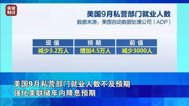 美国9月私营部门就业人数不及预期 强化美联储年内降息预期