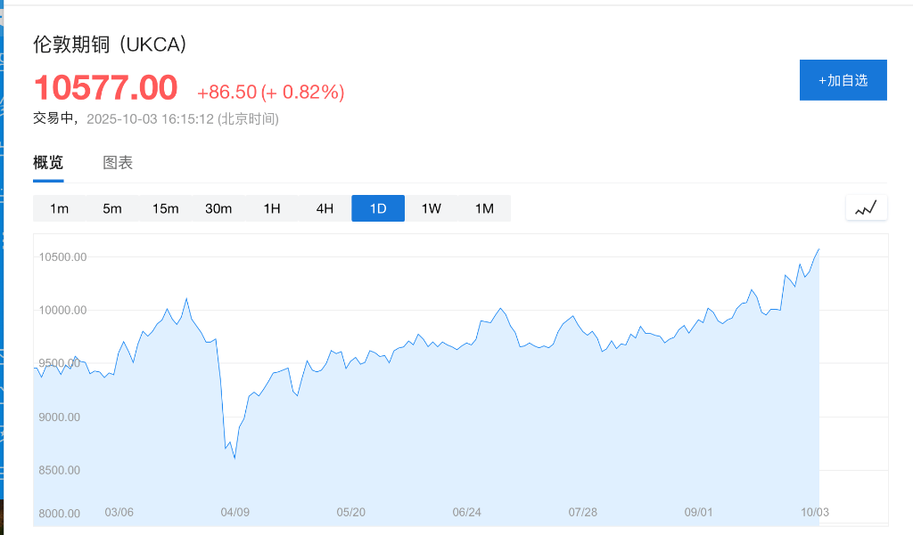 • 铜价大涨,伦敦期铜价格飙升至年内高点至10577美元/吨。