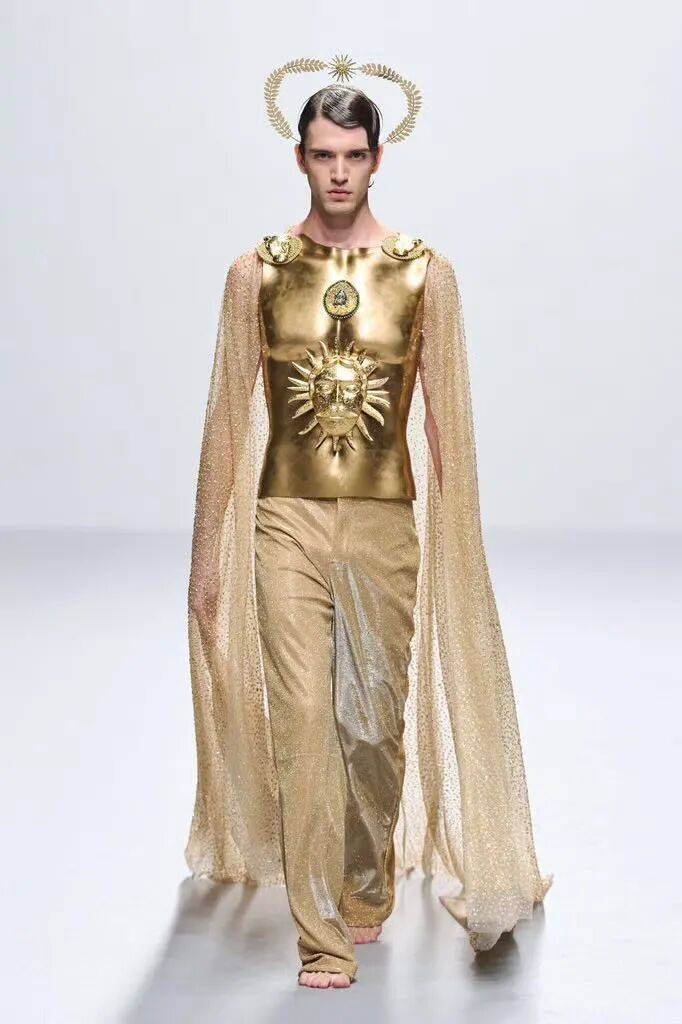 尼加拉瓜知名设计师 Erick Bendaña 于迪拜时装周惊艳亮相,带来了其 2026 春夏成衣系列的震撼大秀。其中,一套黄金战神男装设计尤为吸睛,瞬间引发广泛关注。
