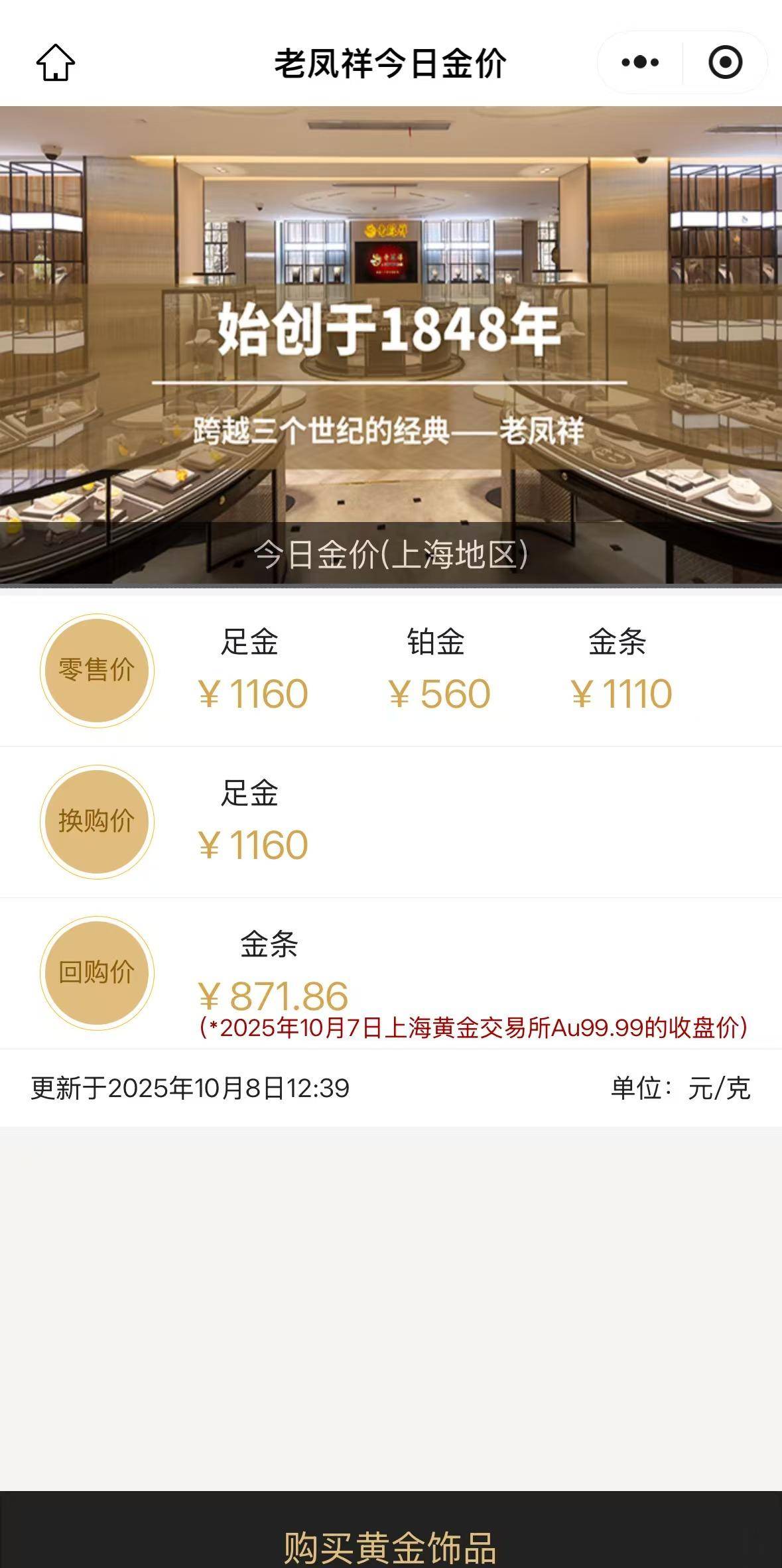 老凤祥小程序截图