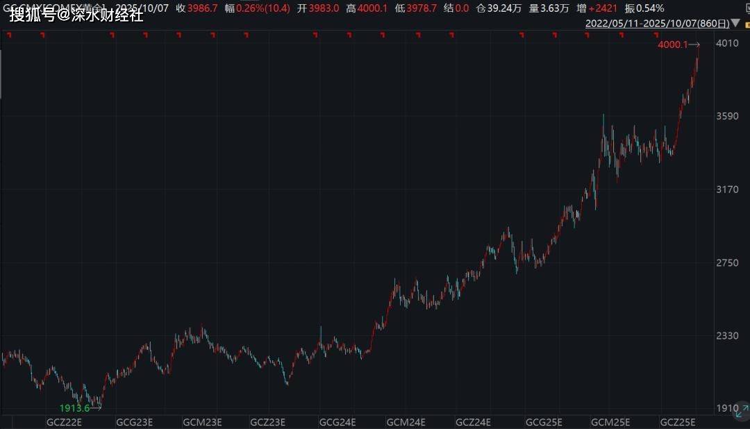 美东时间10月7日清晨,纽约商品交易所(COMEX)的交易屏幕上,黄金期货价格曲线陡然向上刺破红色关口——4000.1美元/盎司,这是人类历史上黄金首次触及这一整数大关。