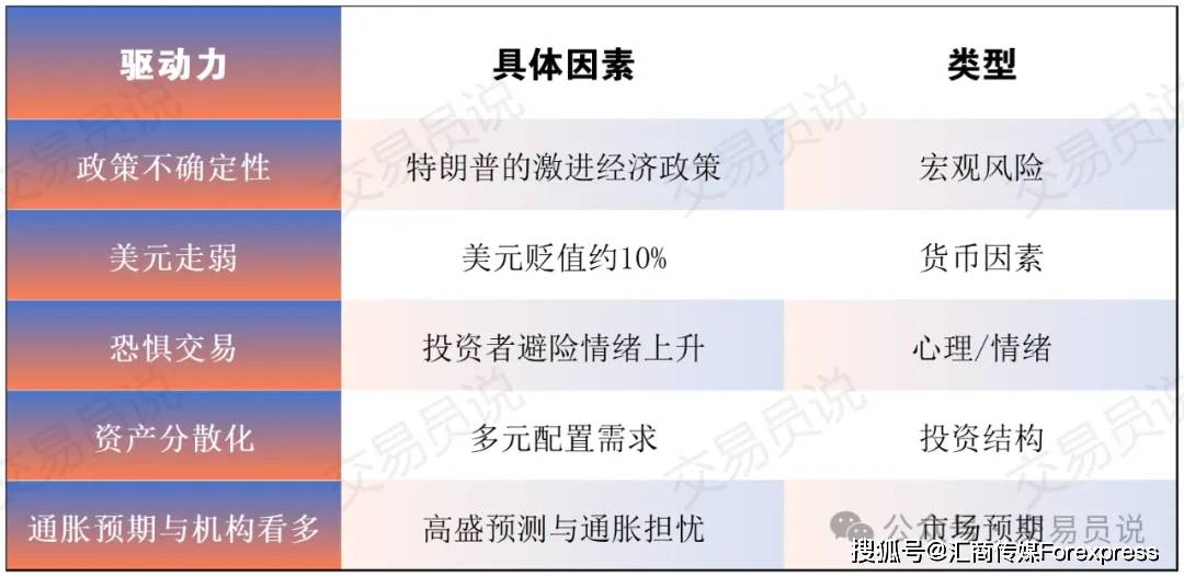 ✍ 逻辑链:通胀担忧+机构看多 → 预期强化 → 投机性资金涌入 → 推升金价