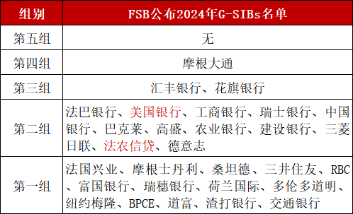 注:美国银行较2023年组别下降,法农信贷较2023年组别上升。