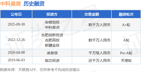 证券之星消息,根据天眼查APP于9月30日公布的信息整理,安徽中科昊音智能科技有限公司A+轮融资,融资额数千万人民币,参与投资的机构包括安徽创投,中科奇点。