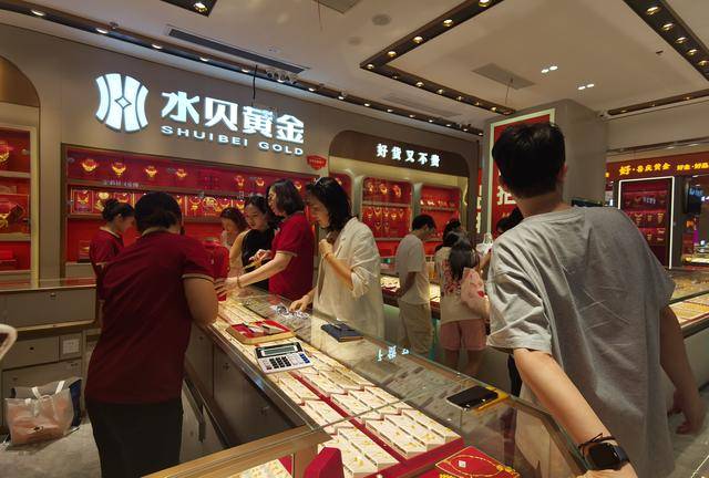 在水贝黄金交易中心,几名女士围在柜台前,结伴试戴黄金手镯、手链、戒指等。忙着接待顾客的店员抽空告诉记者,由于近期黄金涨势“凶猛”,国庆期间“一口价”的金饰卖的最好。“我们水贝黄金是品牌金饰,价格已经比知名大品牌要低一些,且节前没有调价,后续也没有调价计划,还没算上手工费。有些老客户买了之后,没过几天又来回购。”