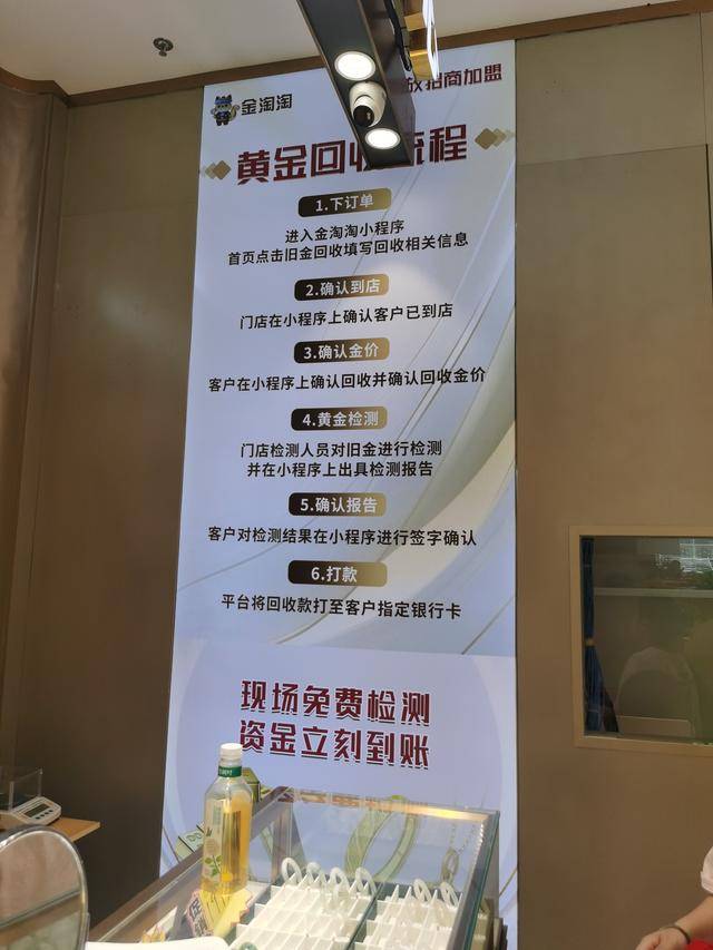 一家专营黄金回收业务,在全国都有分店的“金淘淘”将深圳总部店开在了IBC MALL首层,前来检测黄金的客人络绎不绝。记者看到店员接过客人手中的金饰放进检测仪器,大约18秒即能初步检测出金饰的黄金含量是足金、76.23%(18K金),还是铜、镍等合金仿制品。如果双方达成回收意向,就进行到“火烧检测”这个”金指标“。