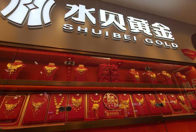 水贝黄金店铺,陈列展示的婚庆“三金”、“五金”等主营金饰品类