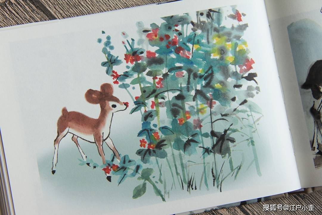 湖边喝水,翠鸟做前景这段我也很喜欢,小写意笔法配合大量想象空间的留白,色彩也是极度舒适。读《鹿铃》可以舒缓精神,松解压力。