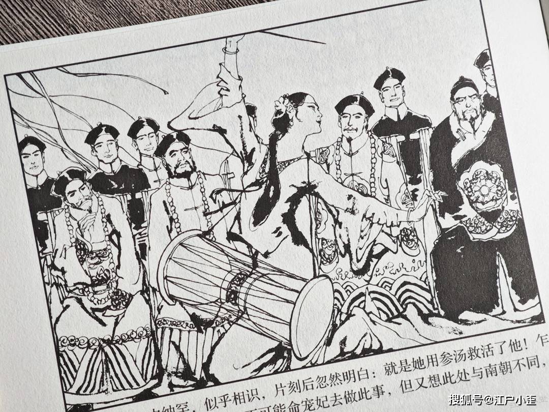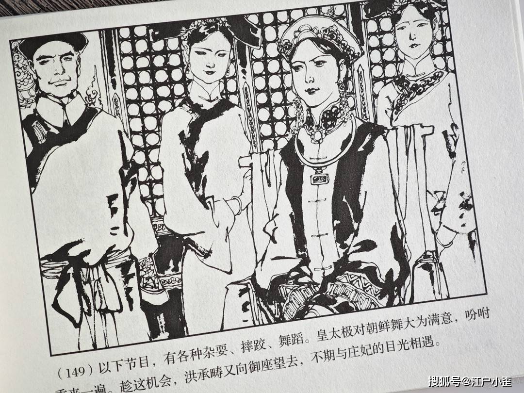 封面,庄妃给洪承畴喂参汤,庄妃当然是美人,这满清服饰难看。洪承畴看似拒绝,又有些动摇,并不坚定。那个装汤暖壶可能是褐漆描金勾莲纹多穆壶,现藏于沈阳故宫博物馆。