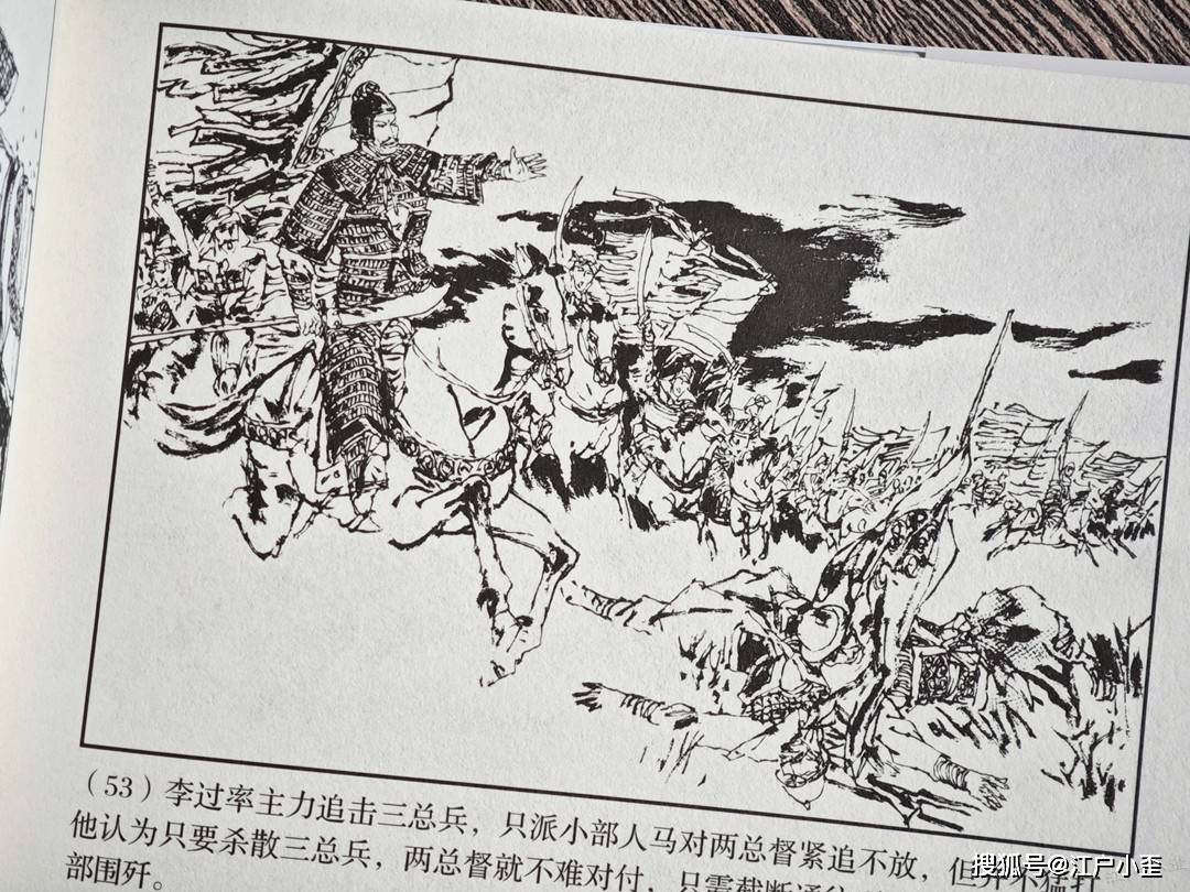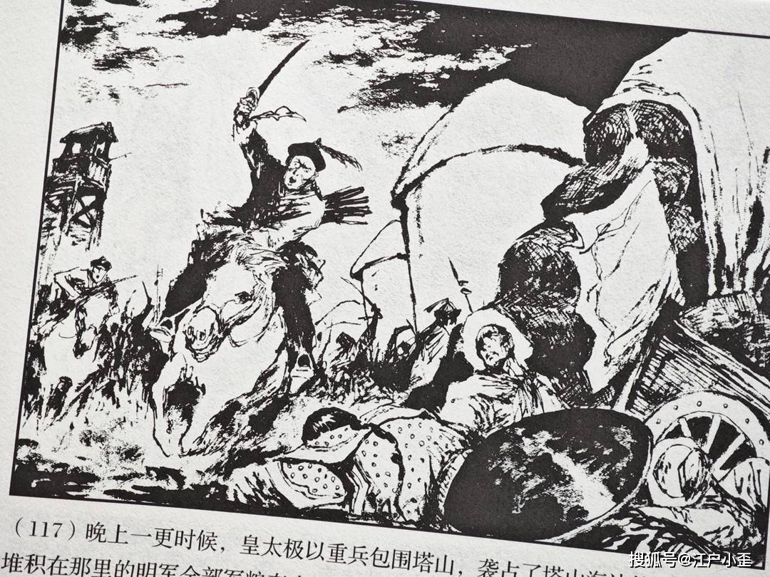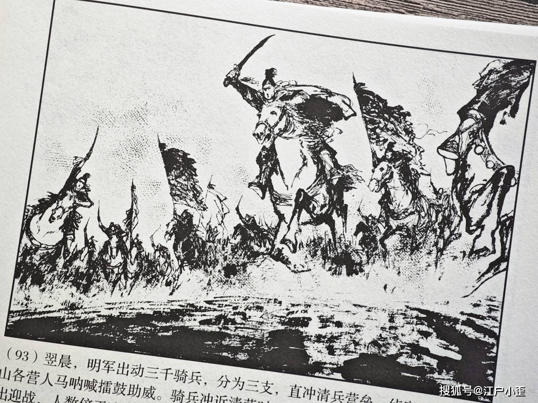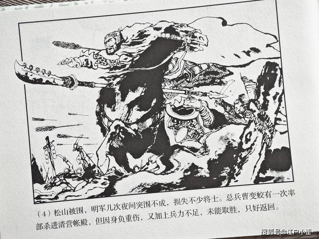 李自成的小说语言并不很白话,这也削弱了它的通俗性,且带有大量官职名、大量地名,光这册战事就提到乳峰山、杏山、塔山、松山等,若非熟通历史地理的读者,阅读难免吃力的。他还时不时抛出陌生的概念,比如攻打曹门,曹门是哪门子门?如果说姚老是为了文学创作尚可理解,连环画脚本就应该将它简化处理。