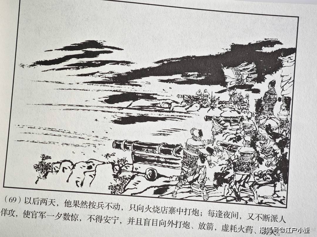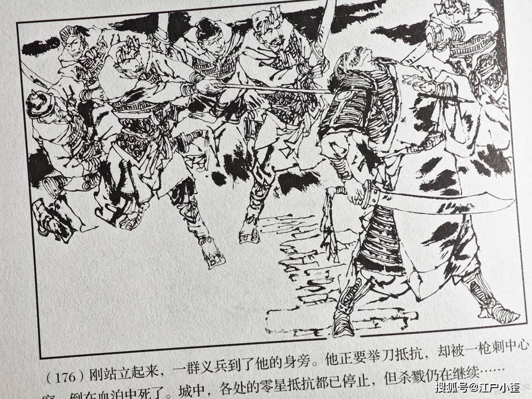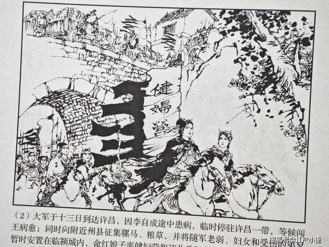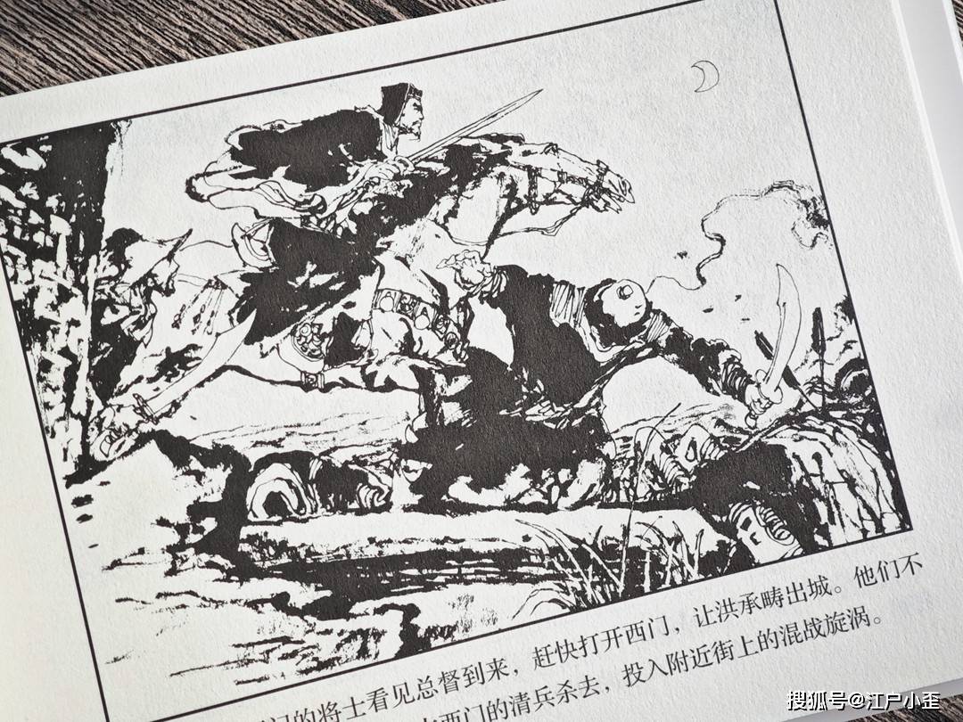 李自成的小说语言并不很白话,这也削弱了它的通俗性,且带有大量官职名、大量地名,光这册战事就提到乳峰山、杏山、塔山、松山等,若非熟通历史地理的读者,阅读难免吃力的。他还时不时抛出陌生的概念,比如攻打曹门,曹门是哪门子门?如果说姚老是为了文学创作尚可理解,连环画脚本就应该将它简化处理。