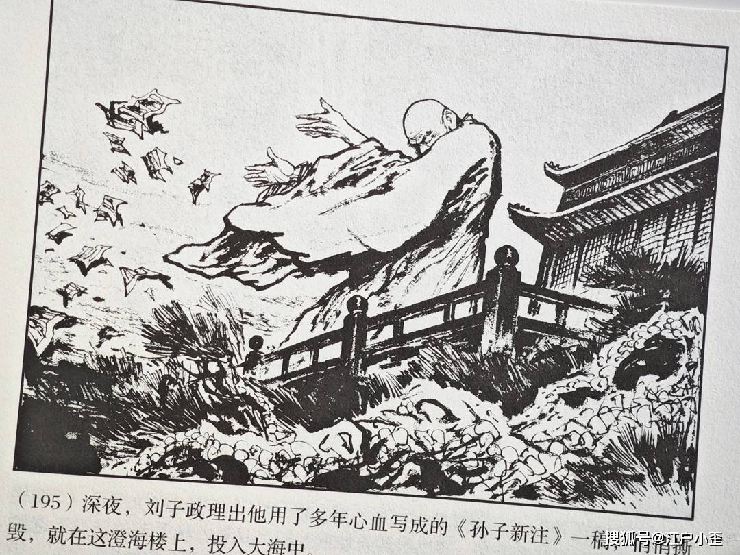 刘子政在山海关听说明军败绩,悲愤不已,将一生心血写的兵书撕碎,剃发出家,匹马出走,不知所踪。最后一幅“古道西风瘦马,断肠人在天涯”,顿感萧索落寞。